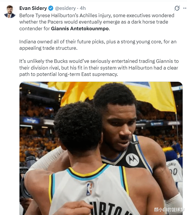 NBA reporter Evan Stirry revealed that before Haliburton was injured, some executives speculated that the Pacers would eventually become the dark horse of the Giannis trade. The Pacers also have a large number of draft picks and a strong young lineup, which is quite attractive in the transaction. The Bucks are unlikely to send Giannis to the Pistons in the same conference. The lineup of Antetokounmpo + Haliburton can make the Pacers the long-term hegemon of the Eastern Conference.