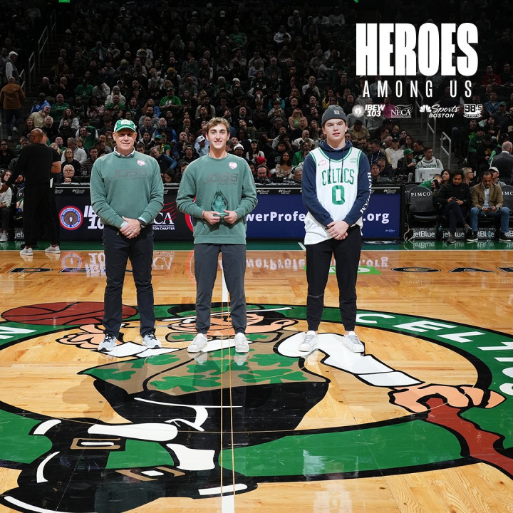 Celtics official Twitter report. Today’s International Brotherhood of Electrical Workers Chapter 103 and New England Contractors Association Boston Chapter #HeroAmongUs honoree was diagnosed with a brain stem glioma in 2019 at the age of 11. The Drive55 Foundation, founded by Jack George, has raised more than $1 million for pediatric brain tumor research while funding advanced treatments for families across the United States.