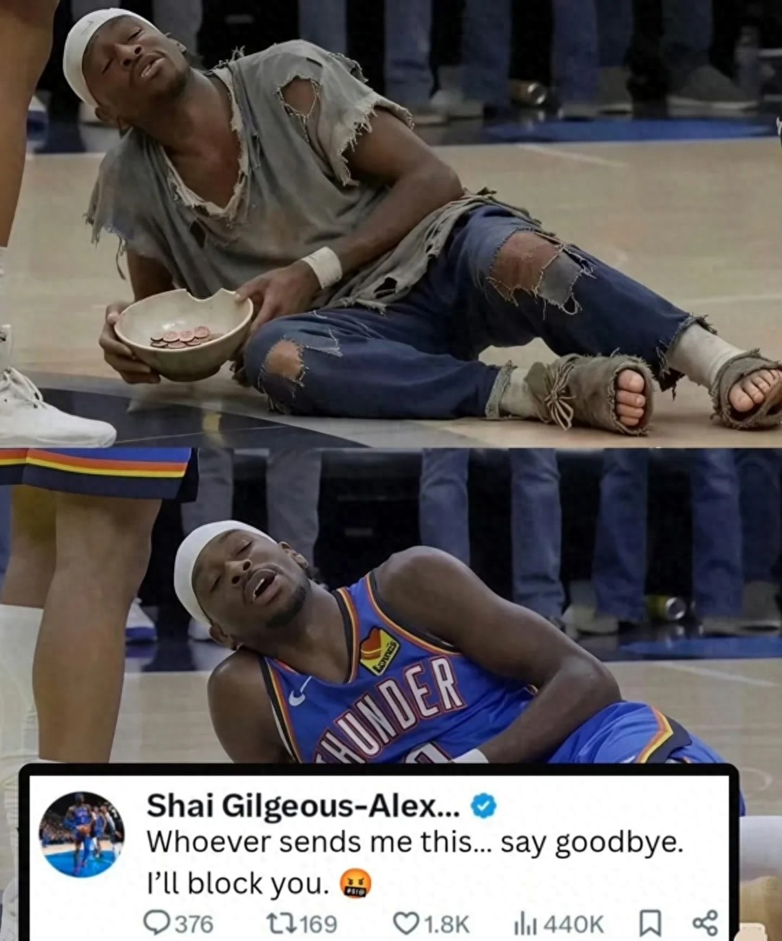 In Alexander's first game against the Rockets, he scored consecutive free throws at the last moment, knocked down Durant for six fouls, and even completed the victory through free throws. In the second game against the Pacers, Alexander took 26 free throws and made 23 of them. In the two games combined, he made 40 free throws. For this reason, some media specially created an image of Alexander begging for free throws. Taking Alexander's action of falling to the ground and gasping for air when playing against the Pacers as a standard, he paired it with tattered clothes and a begging rice bowl.