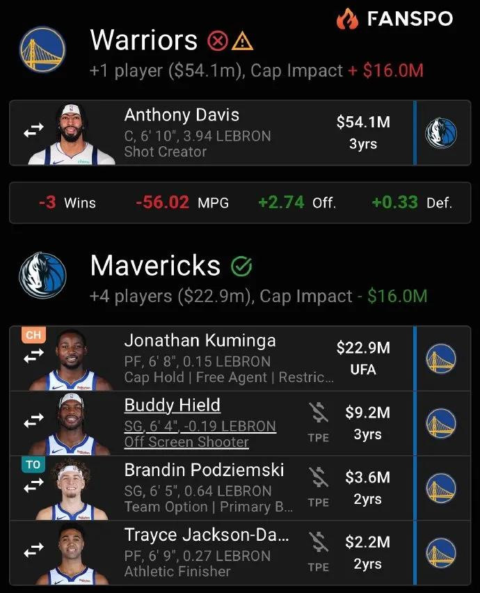 The latest simulated trading plan shows that the Warriors can send Kuminga + Hield + Podemski + TJD in a package, and exchange the Mavericks for Big Eyebrow.