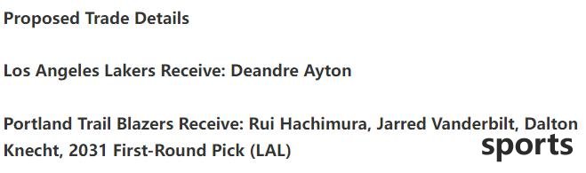 However, given the actual situation of the Lakers, the US media "Open-Air Stand" recommends that the Lakers and the Trail Blazers make a 4-for-1 deal. The Lakers only sent Hachimura Hiroshi, Vanderbilt, Knector, and the first round of 31 years, and got Ayton.