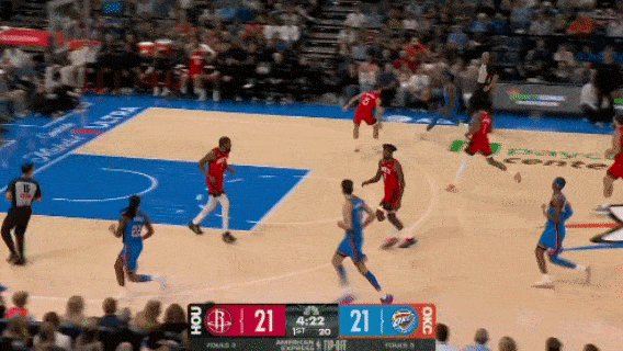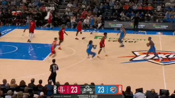 Alexander dribbled past half-court. Dort immediately raised the pick-and-roll and handed Shepard to Alexander. Alexander only used a behind-the-back dribble to throw away Shepard and drive to the basket. The ball was kicked out of bounds by Durant, who was on defense, and the Thunder challenged it. As a result, in slow motion replay, Sheppard's thug fouled, sending Alexander to the free throw line.