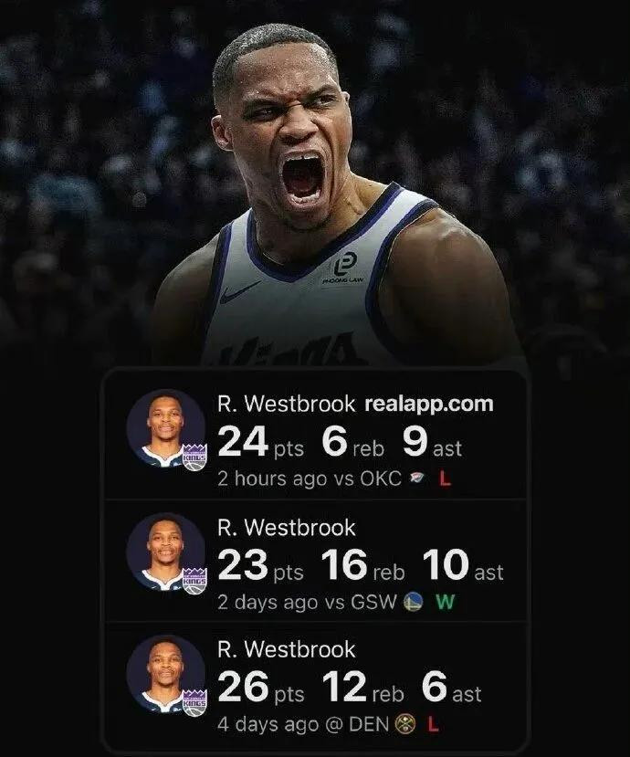 I believe that what everyone is most concerned about is the whereabouts of Westbrook. So far this season, he has played 17 games for the Kings and started 11 times, averaging 28.2 minutes per game and contributing 14.1 points6 .9 rebounds, 6.5 assists, 3.1 turnovers, 1.1 steals, 44.4% field goal percentage, and 2.1 three-pointers per game with a 38.9% field goal percentage, proving that even though he is 37 years old, he still has a lot of gas in the tank.