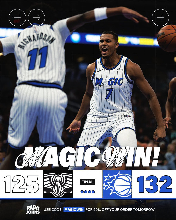 The Magic defeated the Pelicans 132-125 at home today, winning their fourth consecutive victory. It is worth mentioning that the Magic achieved a record of 4 wins and 0 losses in the preseason this season, without losing a game. This is also the first time they have remained undefeated in a preseason game since the 10-11 season (7 wins and 0 losses). This season, the Magic also achieved a record of 52 wins and 30 losses in the regular season, ranking fourth in the Eastern Conference. However, they were eliminated by the Hawks 2-4 in the first round of the playoffs.