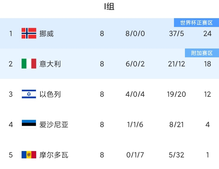 In this World Cup preliminaries, Italy is divided into Group I together with Norway, Estonia, Israel, and Moldova. If it were the Italian team 20 years ago, they might have qualified for the World Cup early. Unfortunately, without that, the current Italy is still the same Italy that could only participate in the play-offs in previous games. Although they are ranked 9th in the world, they still lost twice to Norway, which is ranked 29th in the world. Especially this time against Norway at home, Italy needed to win by at least 9 goals to qualify for the 2026 World Cup. However, Portugal scored 9-1, while Italy suffered another disastrous defeat.