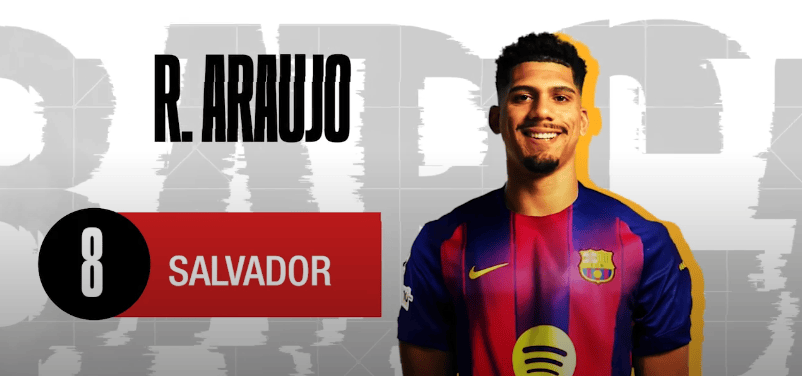 Each score for Barcelona: Araujo leads with 8 points, Pedri has 7 points, and Conde is at the bottom with 4 points.