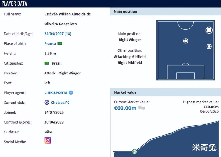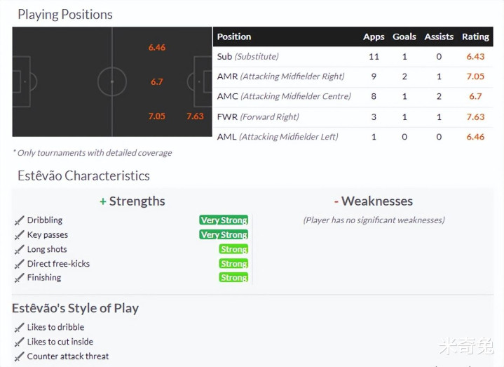 He has already scored 4 goals and 1 assist at Chelsea this season. Although the 18-year-old Esteban's absolute speed and explosive power are not outstanding, and his strength and weight are also disadvantages, he can handle the ball with both feet and has a high football intelligence, which allows him to make up for many of his shortcomings.