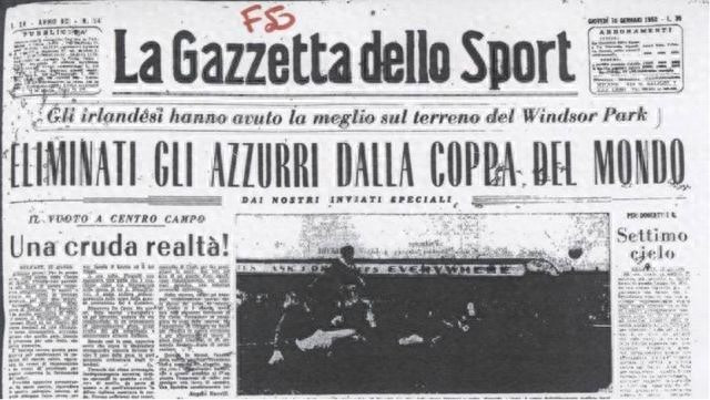 On January 16, 1958, this article title appeared on the left side of the front page of "Gazzetta dello Sport", followed by a line of large characters: "The Irish performed better at Windsor Park, the Italian team missed the World Cup." Sorry, the last five words may cause a stress reaction among many contemporary Italian fans, but after the draw of the European play-offs of this World Cup, it is difficult not to look back on this distant history.