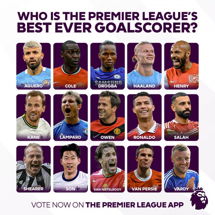 On October 8th, the official Premier League social media launched a vote to select the top scorer in league history. The player data are as follows: