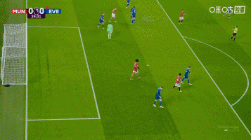 In the 45th minute, Bruno Fernandez tried a long shot from the outside. The angle was very tricky, but it was saved by the goalkeeper. At halftime, Manchester United 0-1 Everton.