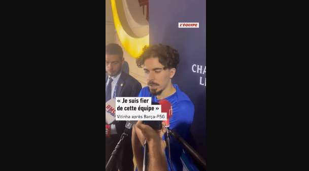 Hupu October 2nd: Paris Saint-Germain midfielder Vitina was interviewed by a mixed interview area after the game against Barcelona 2-1.